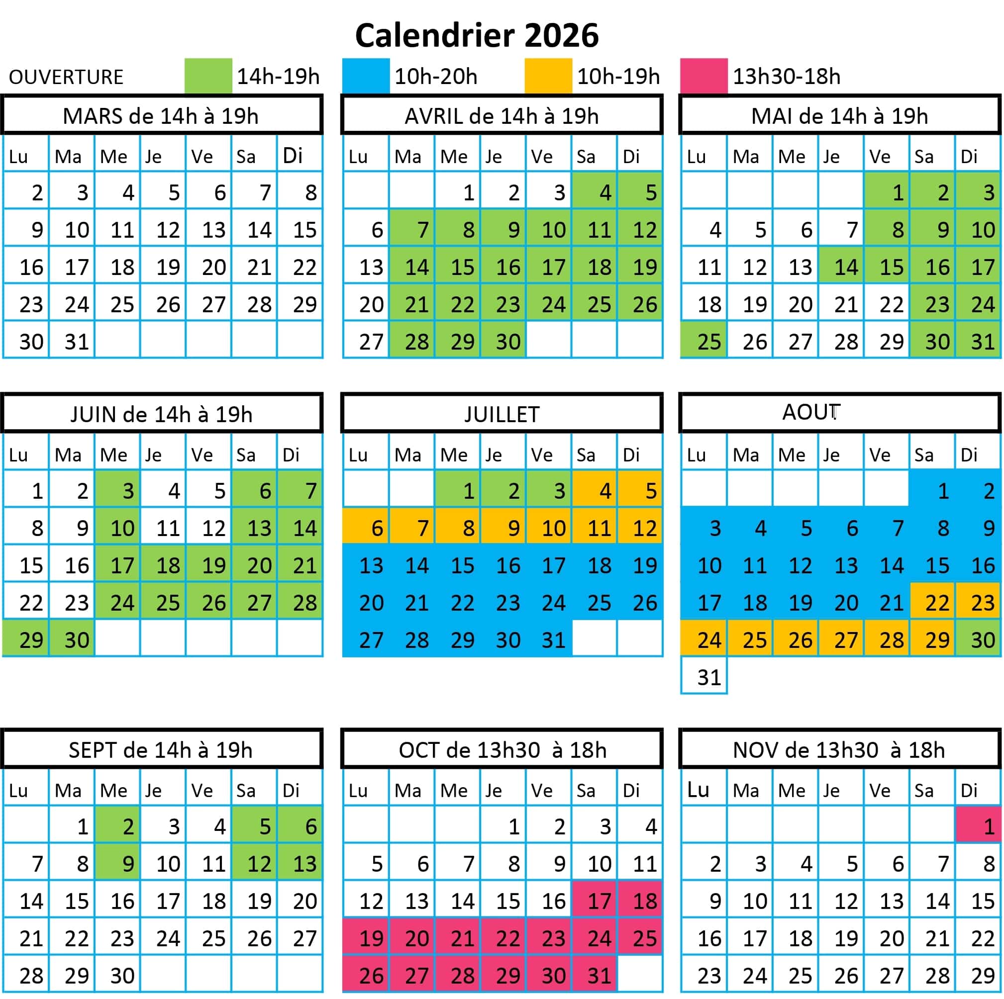 Horaires d'ouverture